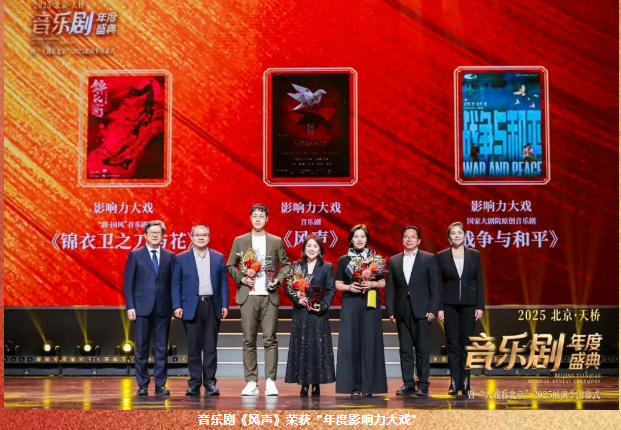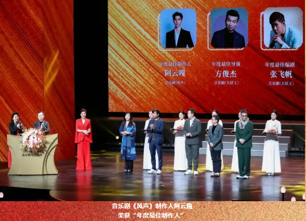 在這星光熠熠的舞臺之上,由北京演藝集團出品的音樂劇《風聲》獲得“年度影響力大戲”,知名音樂劇制作人、演員、北京歌劇舞劇院音樂劇團團長阿云嘎擔任本屆盛典首席音樂劇推廣大使,并憑借音樂劇《風聲》獲得“年度最佳制作人”,北京歌劇舞劇院音樂劇團演員于佳鑫則憑借音樂劇《揚名立萬》獲得“年度最具潛力女演員”。